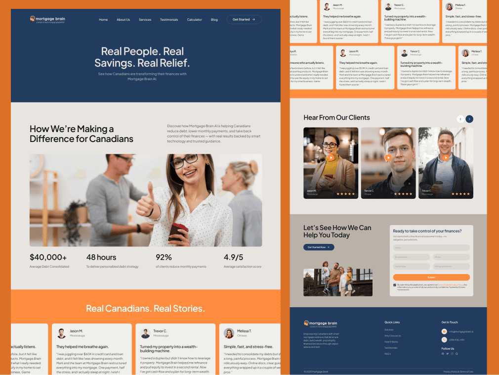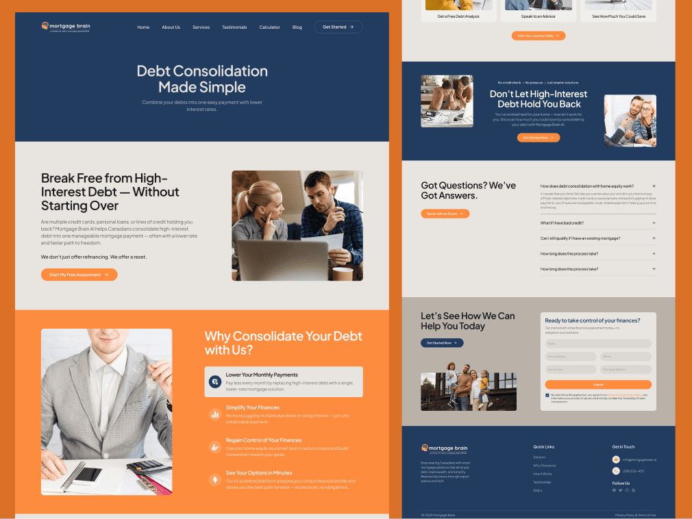 Designed a clean, modern website in Figma for Mortgage Brain AI, focused on clarity, trust, and user engagement. The layout simplifies complex mortgage and AI-driven insights into an easy-to-understand experience, with clear messaging, intuitive sections, and strong calls to action. The design is fully developer-ready, responsive-focused, and structured to support conversion and scalability.